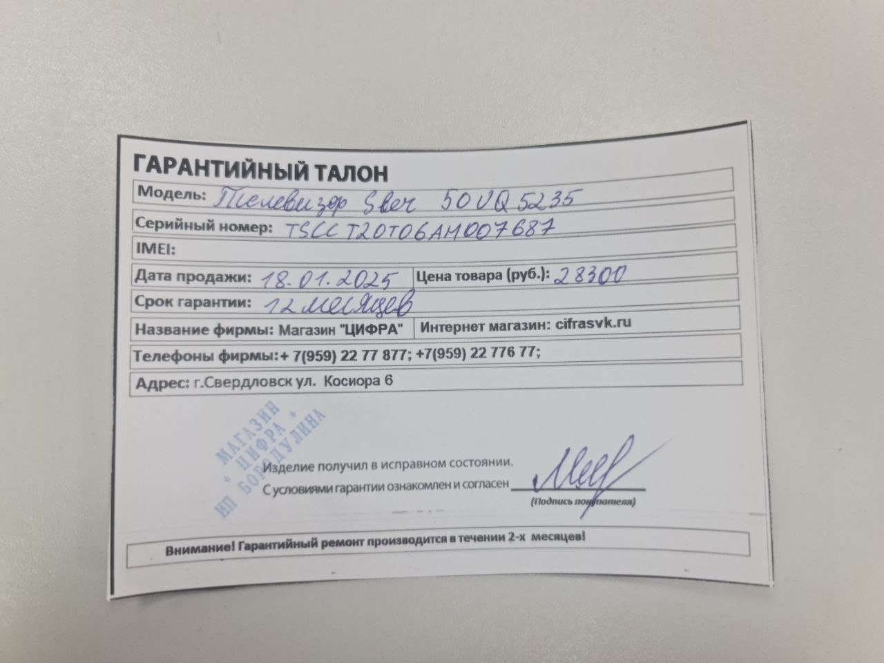 ../ Гарантийный талон.jpeg 03-Sep-2025 15:53 179K Дополнительное_фото_1.jpeg 03-Sep-2025 15:53 142K Дополнительное_фото_2.jpeg 03-Sep-2025 15:53 142K Заявление о расчете с конечником.jpeg 03-Sep-2025 15:53 115K Серийный номер (Стикер Техноуспеха).jpeg 03-Sep-2025 15:53 138K Товар целиком.jpeg 03-Sep-2025 15:53 163K Упаковка.jpeg 03-Sep-2025 15:53 142K Чек.jpeg 03-Sep-2025 15:53 123K