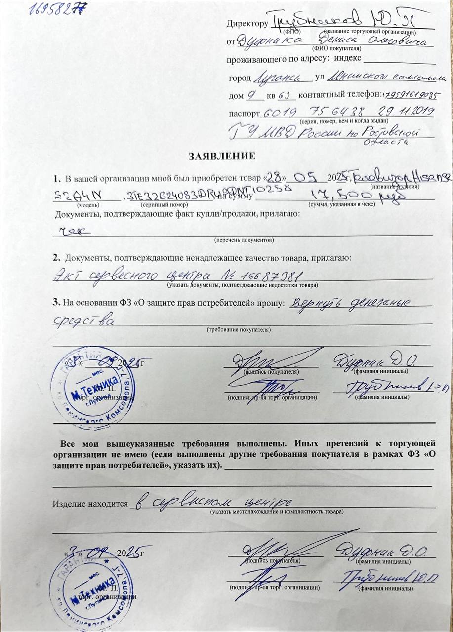 ../ Акт неремонтопригодности.jpg 06-Sep-2025 15:09 166K Гарантийный талон.jpg 06-Sep-2025 15:09 249K Дополнительное_фото_1.jpg 06-Sep-2025 15:09 117K Дополнительное_фото_2.jpg 06-Sep-2025 15:09 117K Заявление о расчете с конечником.jpg 06-Sep-2025 15:09 162K Товар целиком.jpg 06-Sep-2025 15:09 117K Упаковка.jpg 06-Sep-2025 15:09 117K Чек.jpg 06-Sep-2025 15:09 178K