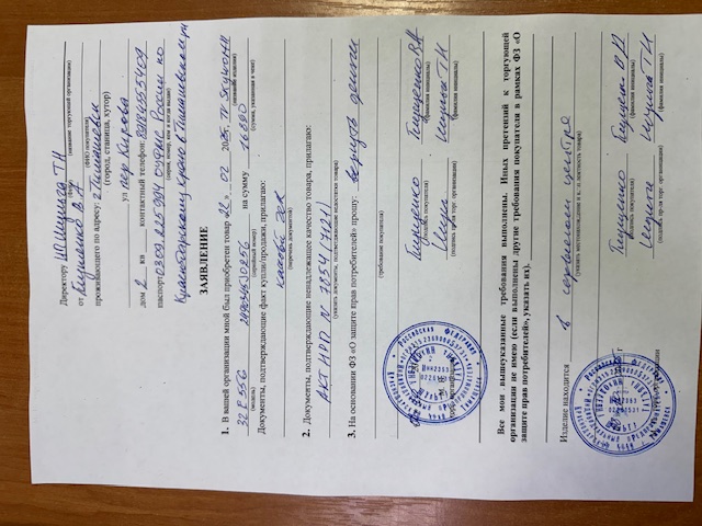 ../ Акт неремонтопригодности.jpeg 08-Oct-2025 13:04 153K Дополнительное_фото_1.jpg 08-Oct-2025 13:04 218K Дополнительное_фото_2.jpg 08-Oct-2025 13:04 218K Заявление о расчете с конечником.jpeg 08-Oct-2025 13:04 150K Товар целиком.jpg 08-Oct-2025 13:04 218K Упаковка.jpg 08-Oct-2025 13:04 218K Чек.jpeg 08-Oct-2025 13:04 172K