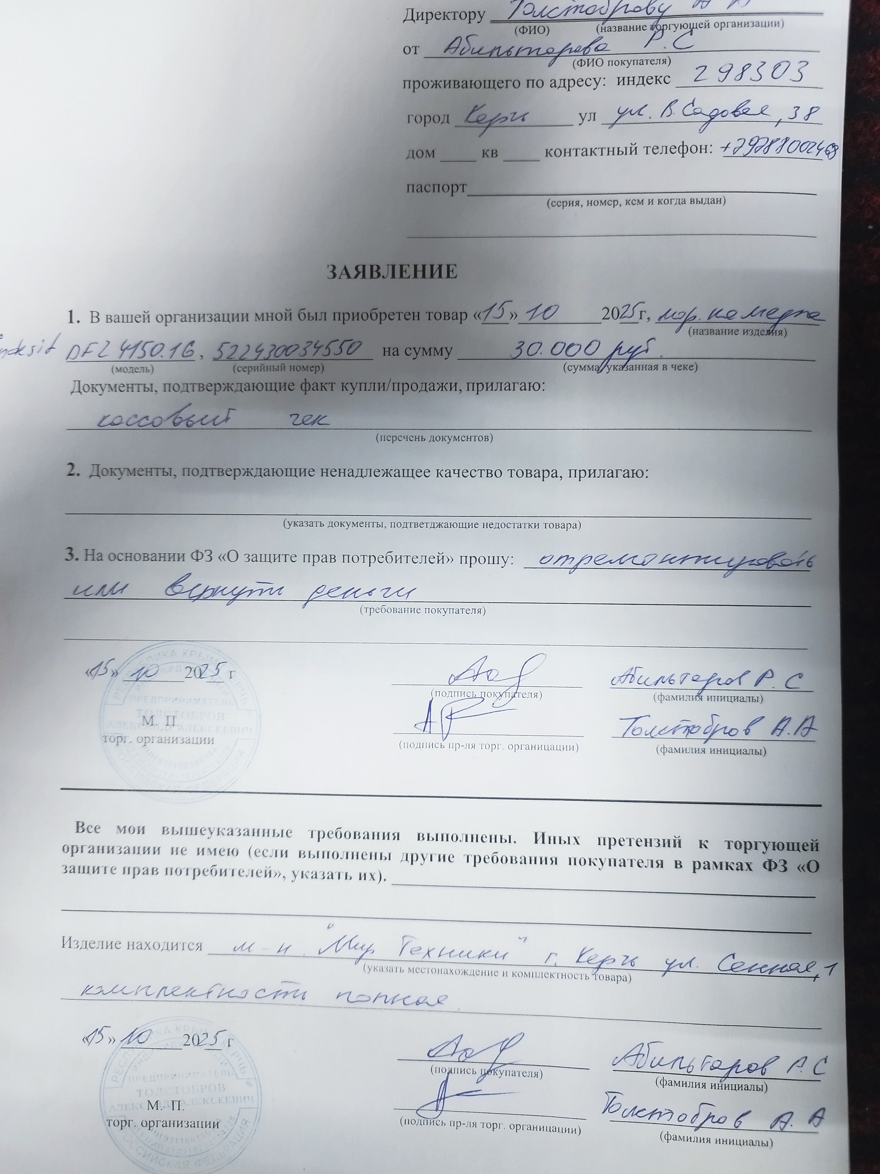 ../ Гарантийный талон.jpg 15-Oct-2025 12:19 4M Дополнительное_фото_1.jpg 15-Oct-2025 12:19 2M Дополнительное_фото_2.jpg 15-Oct-2025 12:19 2M Заявление о расчете с конечником.jpg 15-Oct-2025 12:19 3M Серийный номер (Стикер Техноуспеха).jpg 15-Oct-2025 12:19 8M Товар целиком.jpg 15-Oct-2025 12:19 3M Упаковка.jpg 15-Oct-2025 12:19 3M Чек.jpg 15-Oct-2025 12:19 3M
