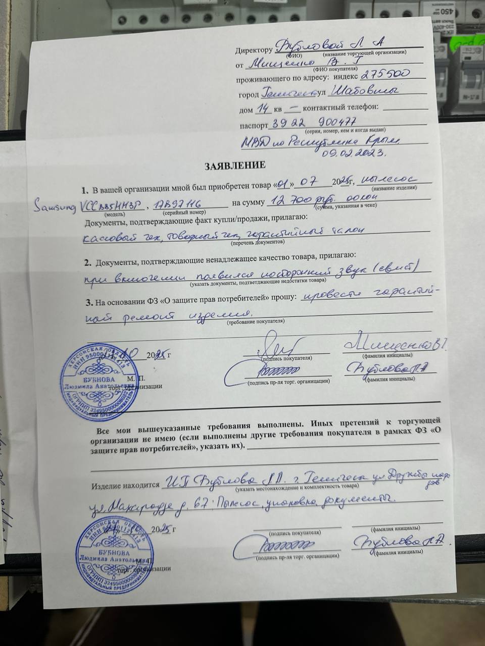 ../ Гарантийный талон.jpg 27-Oct-2025 14:09 119K Дополнительное_фото_1.jpg 27-Oct-2025 14:09 165K Дополнительное_фото_2.jpg 27-Oct-2025 14:09 102K Заявление о расчете с конечником.jpg 27-Oct-2025 14:09 135K Серийный номер (Стикер Техноуспеха).jpg 27-Oct-2025 14:09 271K Товар целиком.jpg 27-Oct-2025 14:09 156K Упаковка.jpg 27-Oct-2025 14:09 152K Чек.jpg 27-Oct-2025 14:09 106K