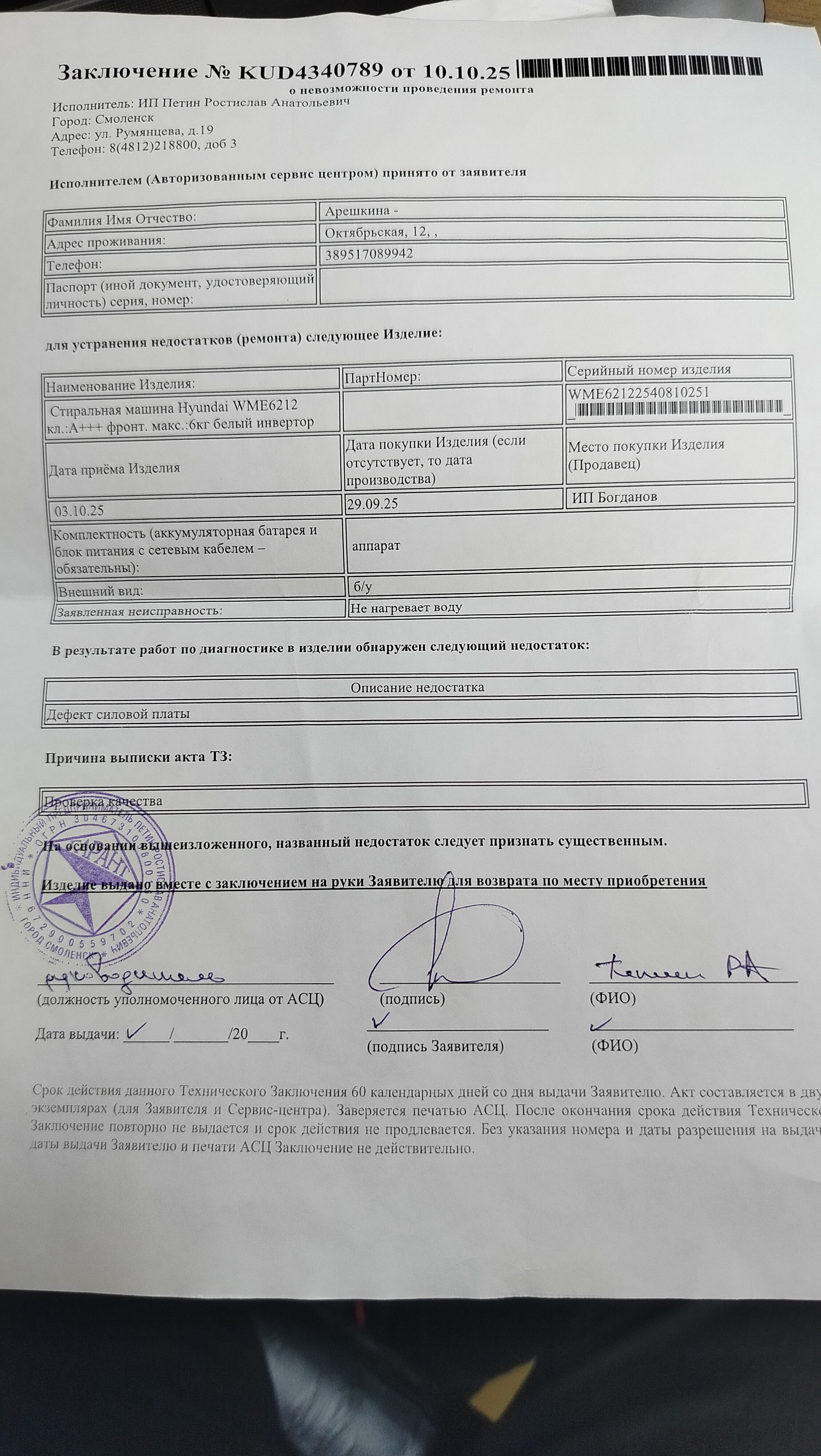 ../ Акт неремонтопригодности.pdf 28-Oct-2025 13:35 445K Гарантийный талон.pdf 28-Oct-2025 13:35 382K Дополнительное_фото_1.jpg 28-Oct-2025 13:34 3M Дополнительное_фото_2.jpg 28-Oct-2025 13:34 3M Заявление о расчете с конечником.pdf 28-Oct-2025 13:35 427K Серийный номер (Стикер Техноуспеха).jpg 28-Oct-2025 13:35 2M Товар целиком.jpg 28-Oct-2025 13:34 2M Упаковка.jpg 28-Oct-2025 13:34 2M Чек.pdf 28-Oct-2025 13:35 378K