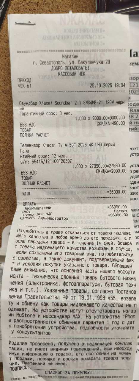 ../ Гарантийный талон.jpg 03-Nov-2025 13:08 201K Дополнительное_фото_1.jpg 03-Nov-2025 13:08 126K Дополнительное_фото_2.jpg 03-Nov-2025 13:08 145K Заявление о расчете с конечником.pdf 03-Nov-2025 14:55 566K Серийный номер (Стикер Техноуспеха).jpg 03-Nov-2025 13:08 120K Товар целиком.jpg 03-Nov-2025 13:08 144K Упаковка.jpg 03-Nov-2025 13:08 127K Чек.jpg 03-Nov-2025 13:08 388K