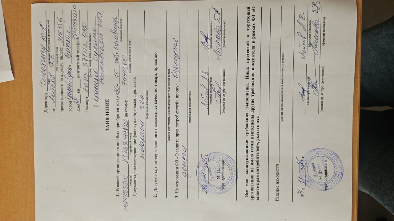 ../ Гарантийный талон.jpeg 24-Nov-2025 12:40 193K Дополнительное_фото_1.jpeg 24-Nov-2025 12:39 162K Дополнительное_фото_2.jpeg 24-Nov-2025 12:39 272K Заявление о расчете с конечником.jpg 24-Nov-2025 12:40 132K Серийный номер (Стикер Техноуспеха).jpeg 24-Nov-2025 12:39 162K Товар целиком.jpeg 24-Nov-2025 12:39 162K Упаковка.jpg 24-Nov-2025 12:39 209K Чек.jpeg 24-Nov-2025 12:40 116K