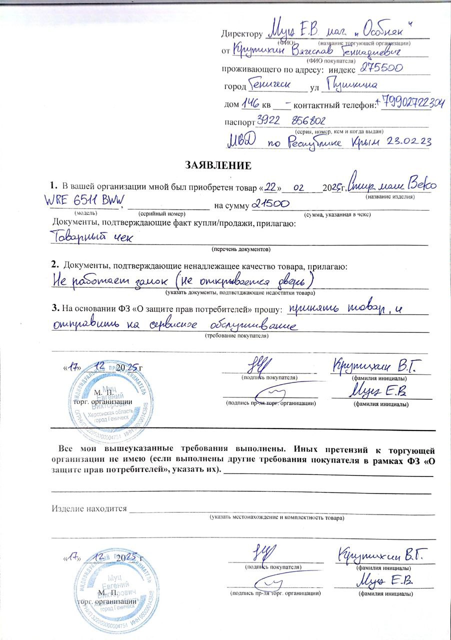 ../ Гарантийный талон.jpg 17-Dec-2025 16:57 237K Дополнительное_фото_1.jpg 17-Dec-2025 16:57 72K Дополнительное_фото_2.jpg 17-Dec-2025 16:57 116K Заявление о расчете с конечником.jpg 17-Dec-2025 16:57 170K Товар целиком.jpg 17-Dec-2025 16:57 140K Упаковка.jpg 17-Dec-2025 16:57 166K Чек.jpg 17-Dec-2025 16:57 208K