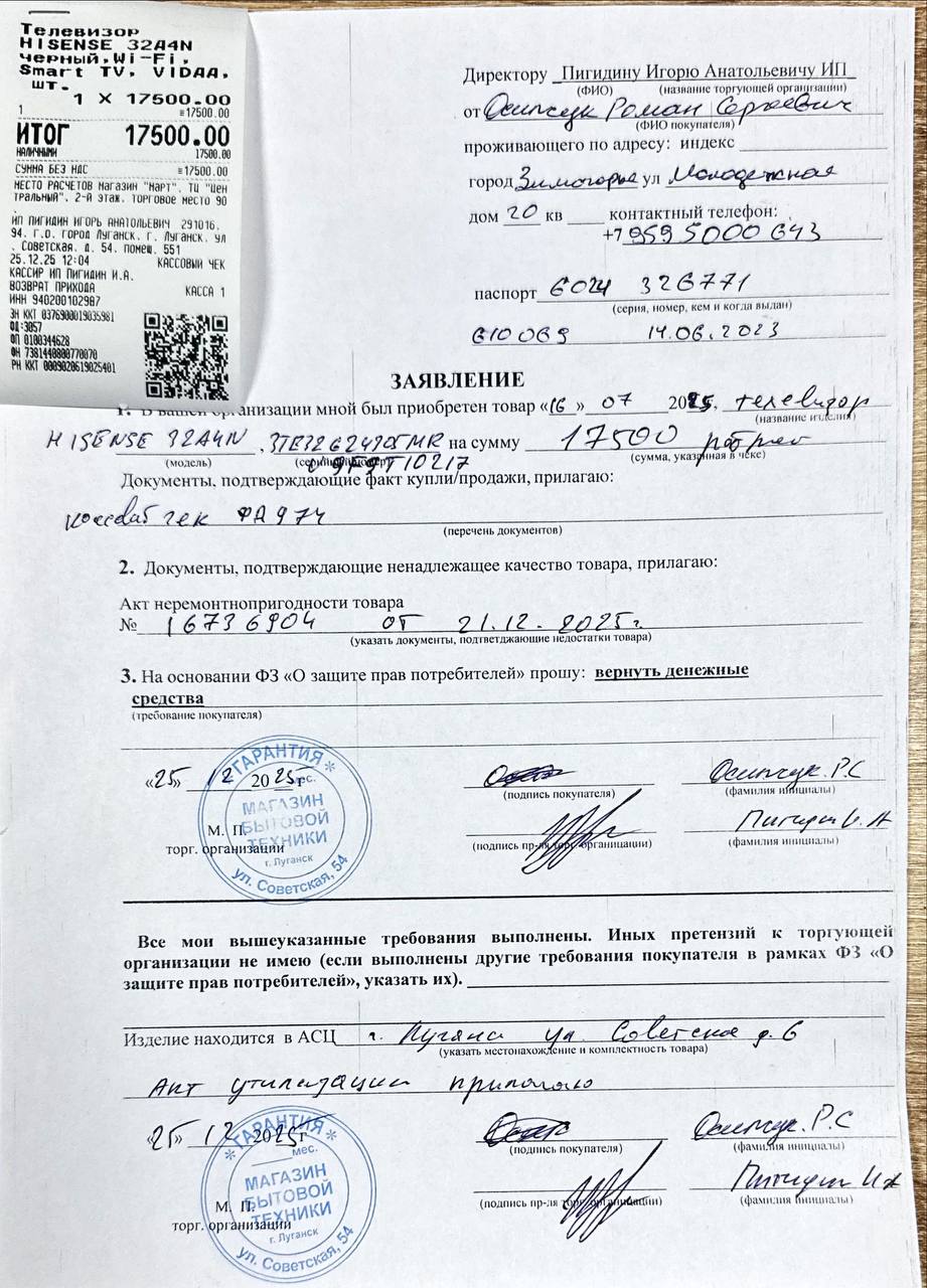 ../ Акт неремонтопригодности.jpg 25-Dec-2025 14:02 162K Гарантийный талон.jpg 25-Dec-2025 14:02 201K Дополнительное_фото_1.jpg 25-Dec-2025 14:02 120K Дополнительное_фото_2.jpg 25-Dec-2025 14:02 120K Заявление о расчете с конечником.jpg 25-Dec-2025 14:02 193K Серийный номер (Стикер Техноуспеха).jpg 25-Dec-2025 14:02 120K Товар целиком.jpg 25-Dec-2025 14:02 120K Упаковка.jpg 25-Dec-2025 14:02 120K Чек.jpg 25-Dec-2025 14:02 201K