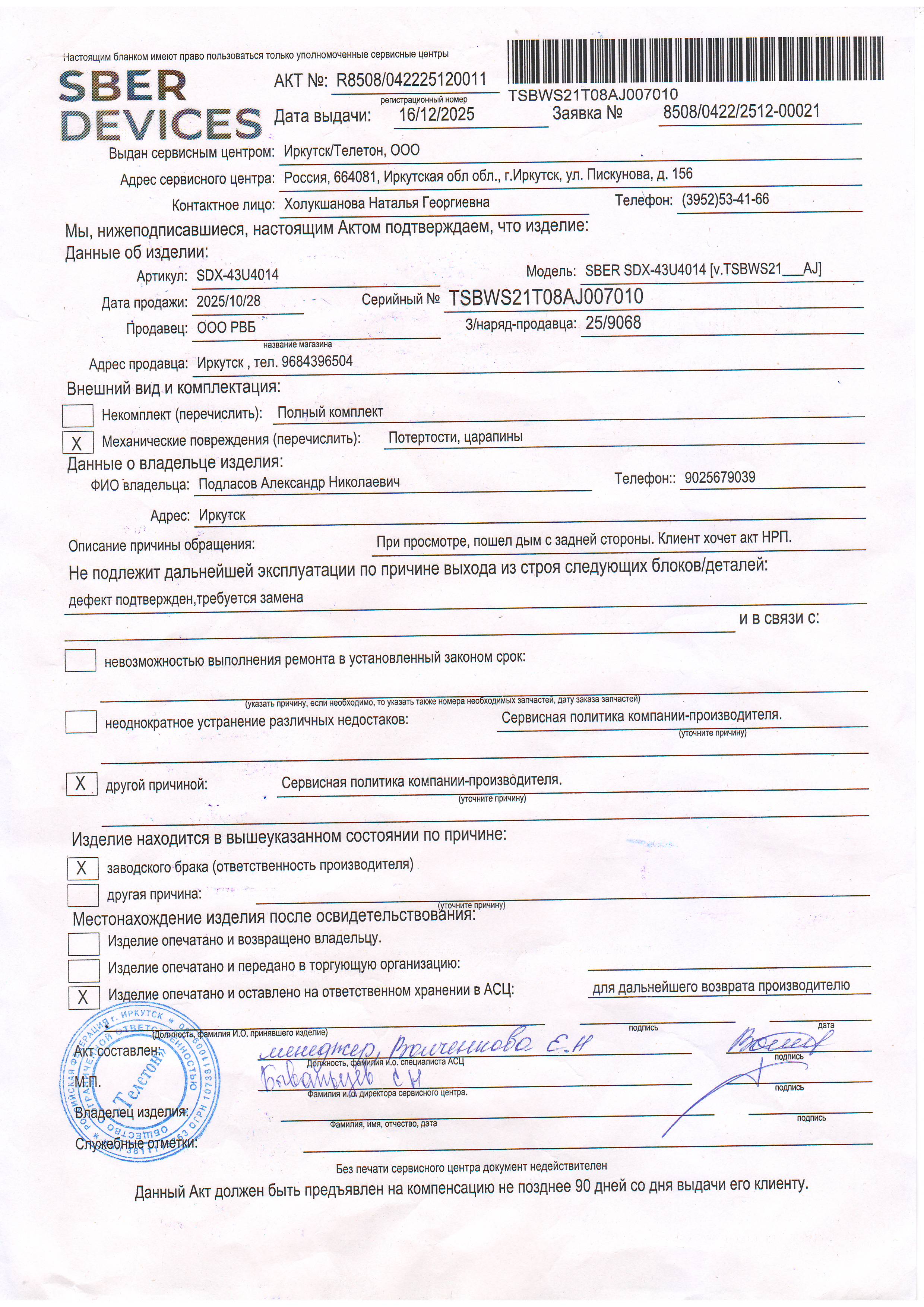../ Акт неремонтопригодности.JPG 21-Jan-2026 17:23 1M Дополнительное_фото_1.JPG 21-Jan-2026 17:23 693K Дополнительное_фото_2.JPG 21-Jan-2026 17:23 693K Заявление о расчете с конечником.JPG 21-Jan-2026 17:23 976K Заявление об утере гарталона.JPG 21-Jan-2026 17:23 569K Серийный номер (Стикер Техноуспеха).JPG 21-Jan-2026 17:23 693K Товар целиком.JPG 21-Jan-2026 17:23 693K Упаковка.JPG 21-Jan-2026 17:23 693K Чек.JPG 21-Jan-2026 17:23 516K