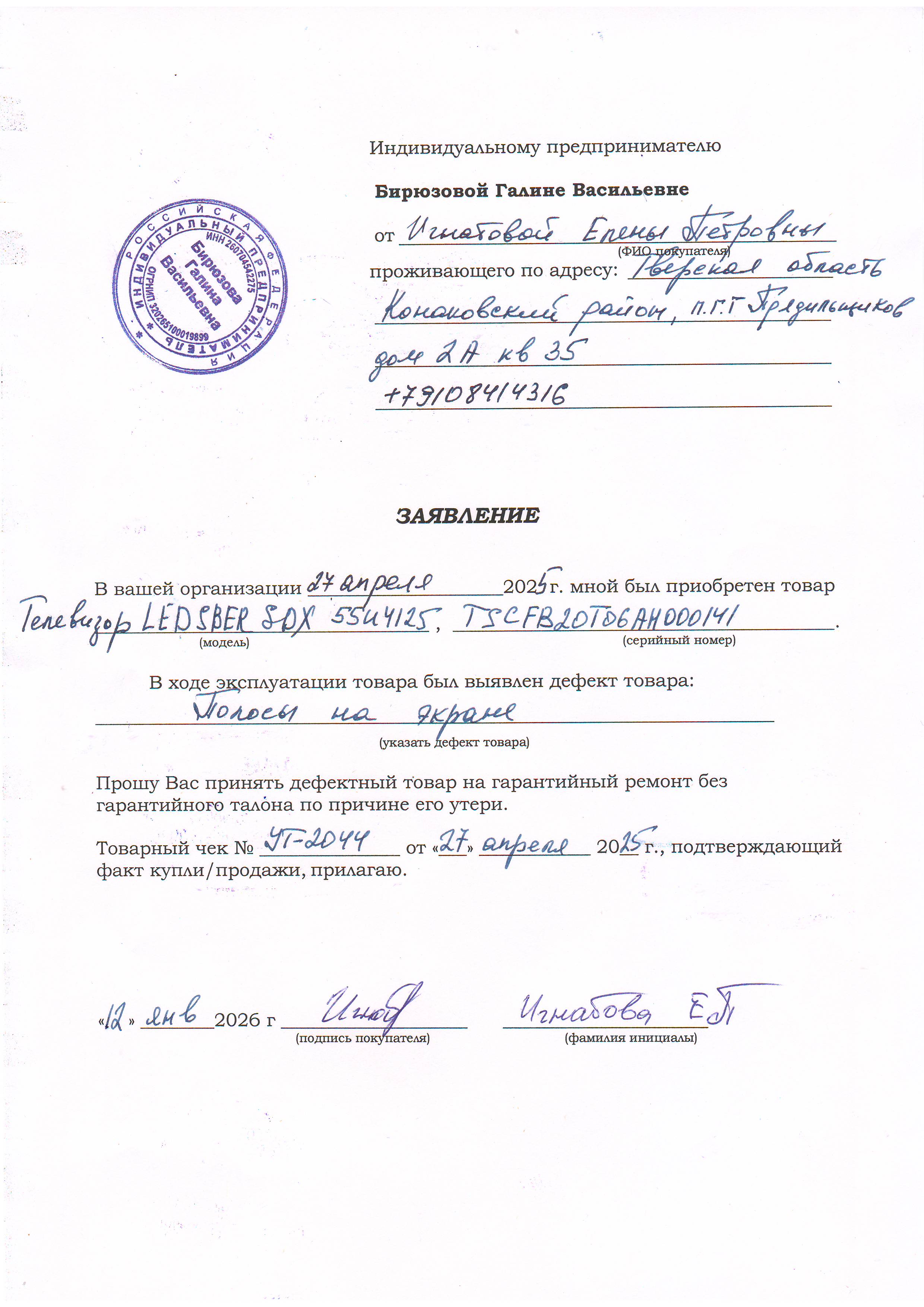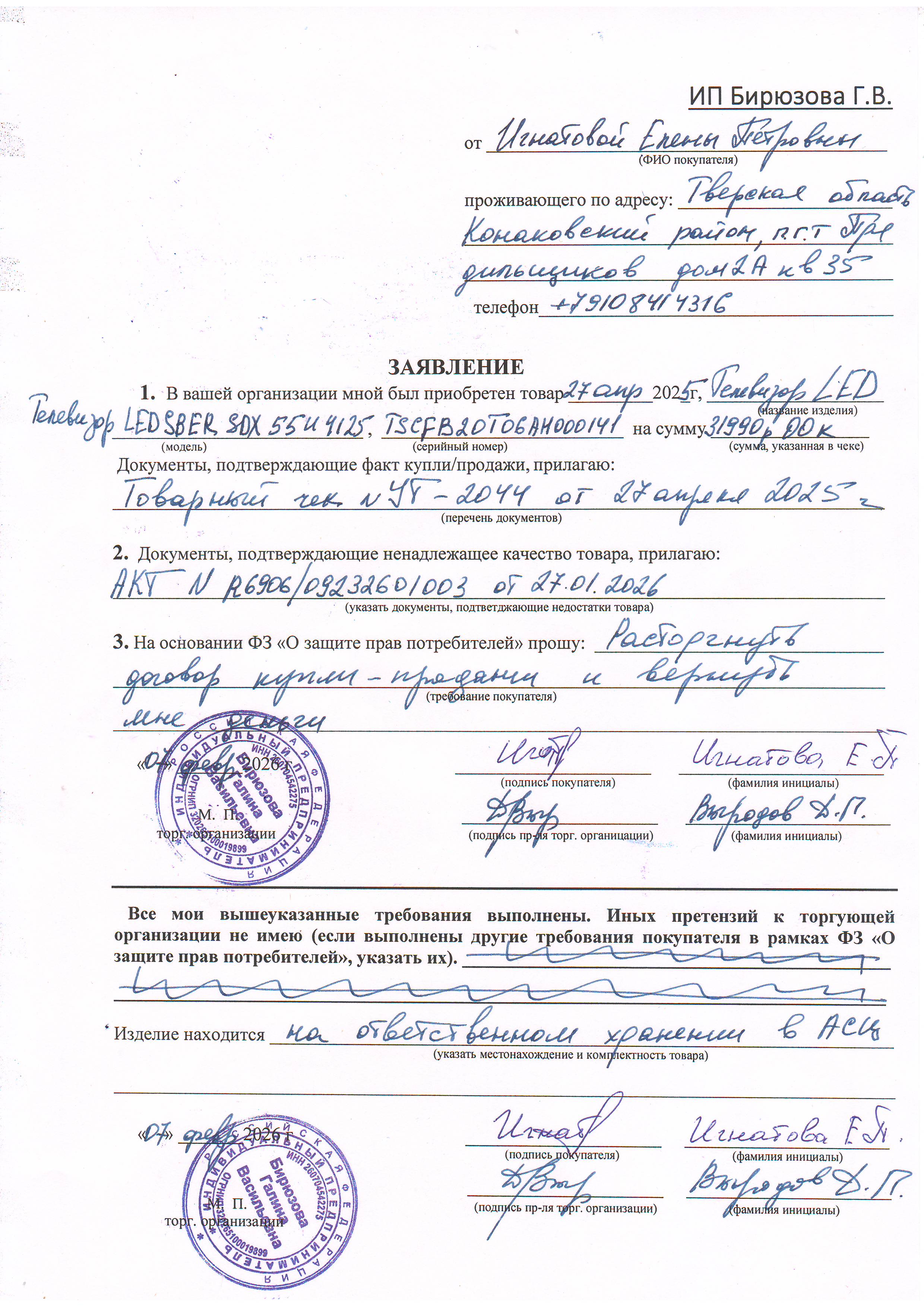../ Акт неремонтопригодности.JPG 12-Feb-2026 14:37 907K Дополнительное_фото_1.JPG 12-Feb-2026 14:37 693K Дополнительное_фото_2.JPG 12-Feb-2026 14:37 693K Заявление о расчете с конечником.JPG 12-Feb-2026 14:37 917K Заявление об утере гарталона.JPG 12-Feb-2026 14:37 571K Серийный номер (Стикер Техноуспеха).JPG 12-Feb-2026 14:37 693K Товар целиком.JPG 12-Feb-2026 14:37 693K Упаковка.JPG 12-Feb-2026 14:37 693K Чек.JPG 12-Feb-2026 14:37 422K