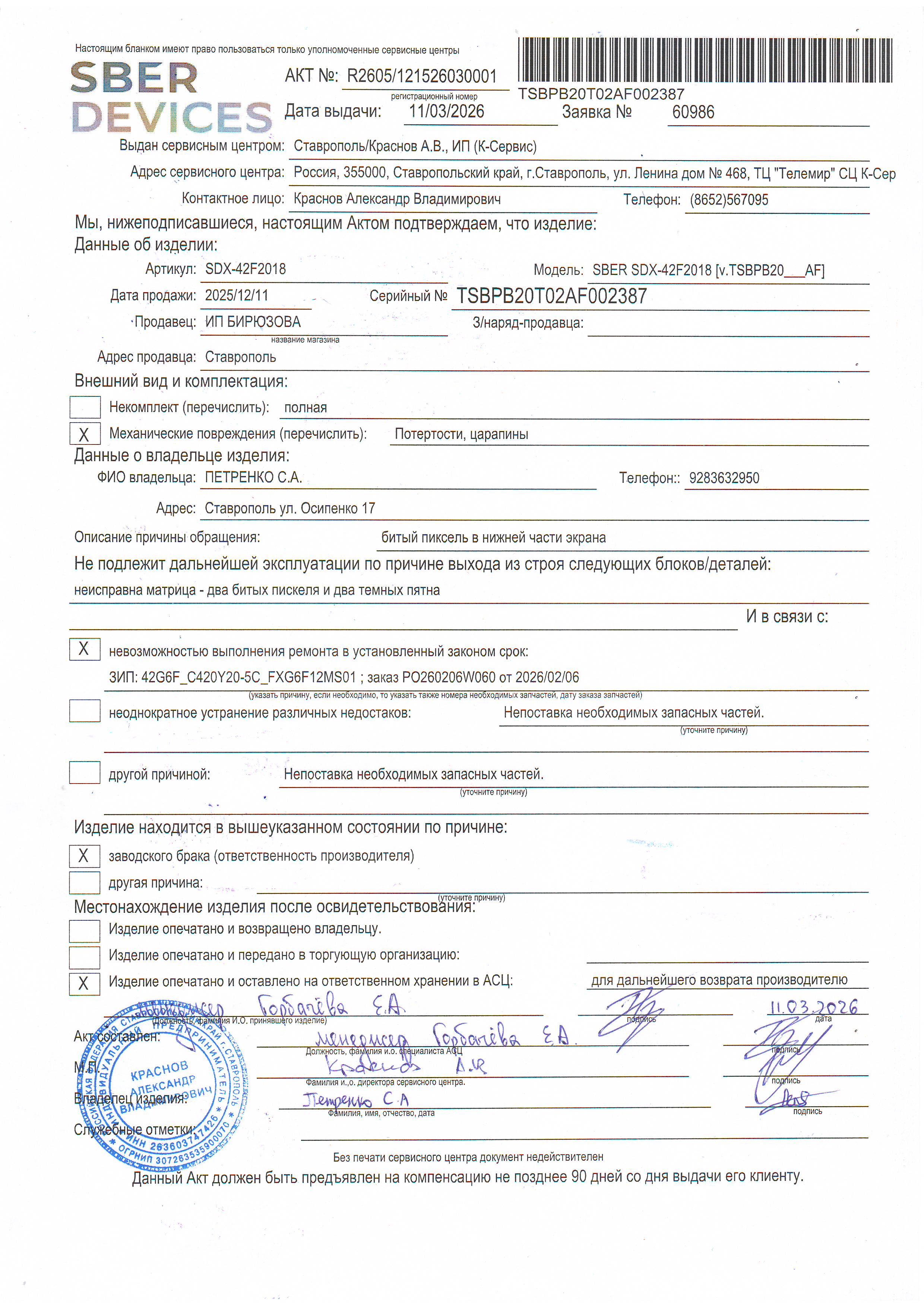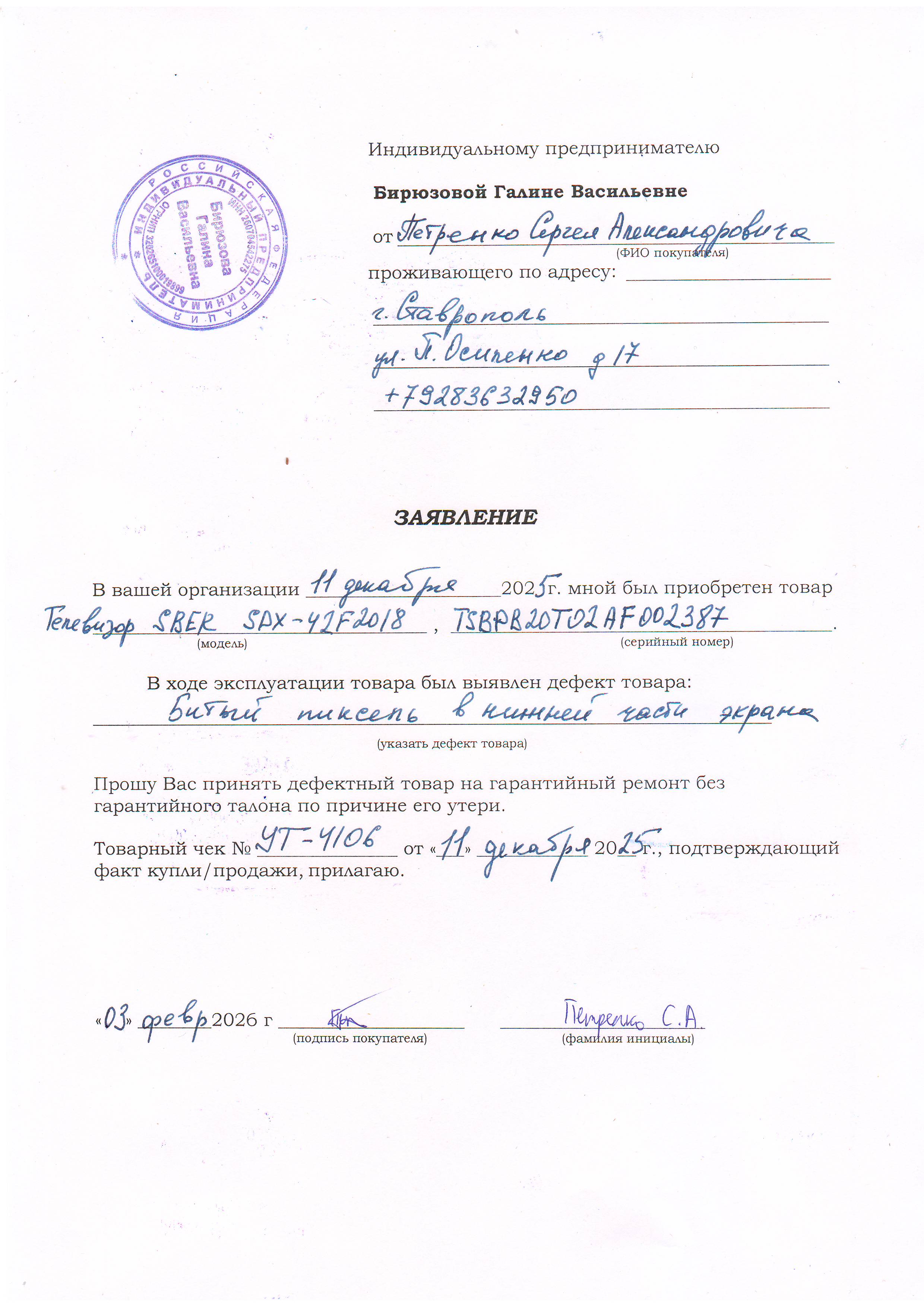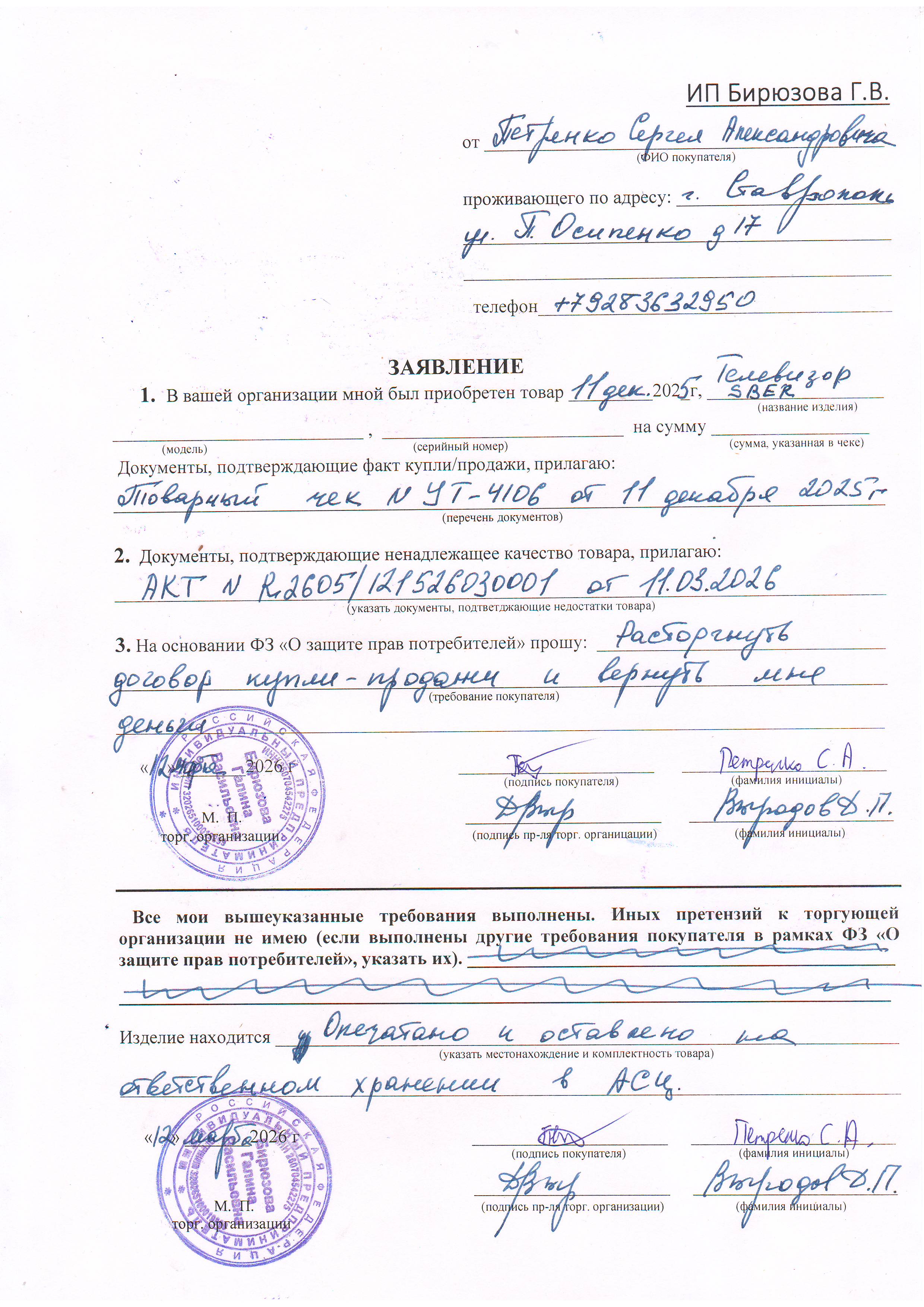 ../ Акт неремонтопригодности.JPG 14-Mar-2026 11:30 910K Дополнительное_фото_1.JPG 14-Mar-2026 11:30 693K Дополнительное_фото_2.JPG 14-Mar-2026 11:30 693K Заявление о расчете с конечником.JPG 14-Mar-2026 11:30 850K Заявление об утере гарталона.JPG 14-Mar-2026 11:30 546K Серийный номер (Стикер Техноуспеха).JPG 14-Mar-2026 11:30 693K Товар целиком.JPG 14-Mar-2026 11:30 693K Упаковка.JPG 14-Mar-2026 11:30 693K Чек.JPG 14-Mar-2026 11:30 447K