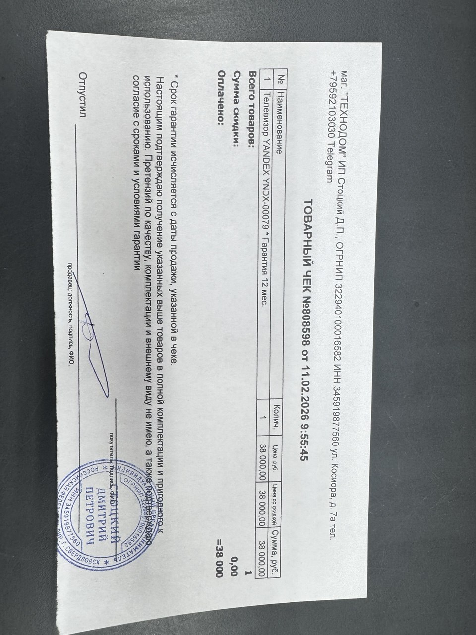 ../ Дополнительное_фото_1.jpg 16-Mar-2026 11:28 165K Дополнительное_фото_2.jpg 16-Mar-2026 11:28 165K Заявление о расчете с конечником.jpeg 16-Mar-2026 11:28 1M Серийный номер (Стикер Техноуспеха).jpg 16-Mar-2026 11:28 308K Товар целиком.jpg 16-Mar-2026 11:28 151K Упаковка.jpg 16-Mar-2026 11:28 244K Чек.jpg 16-Mar-2026 11:28 219K