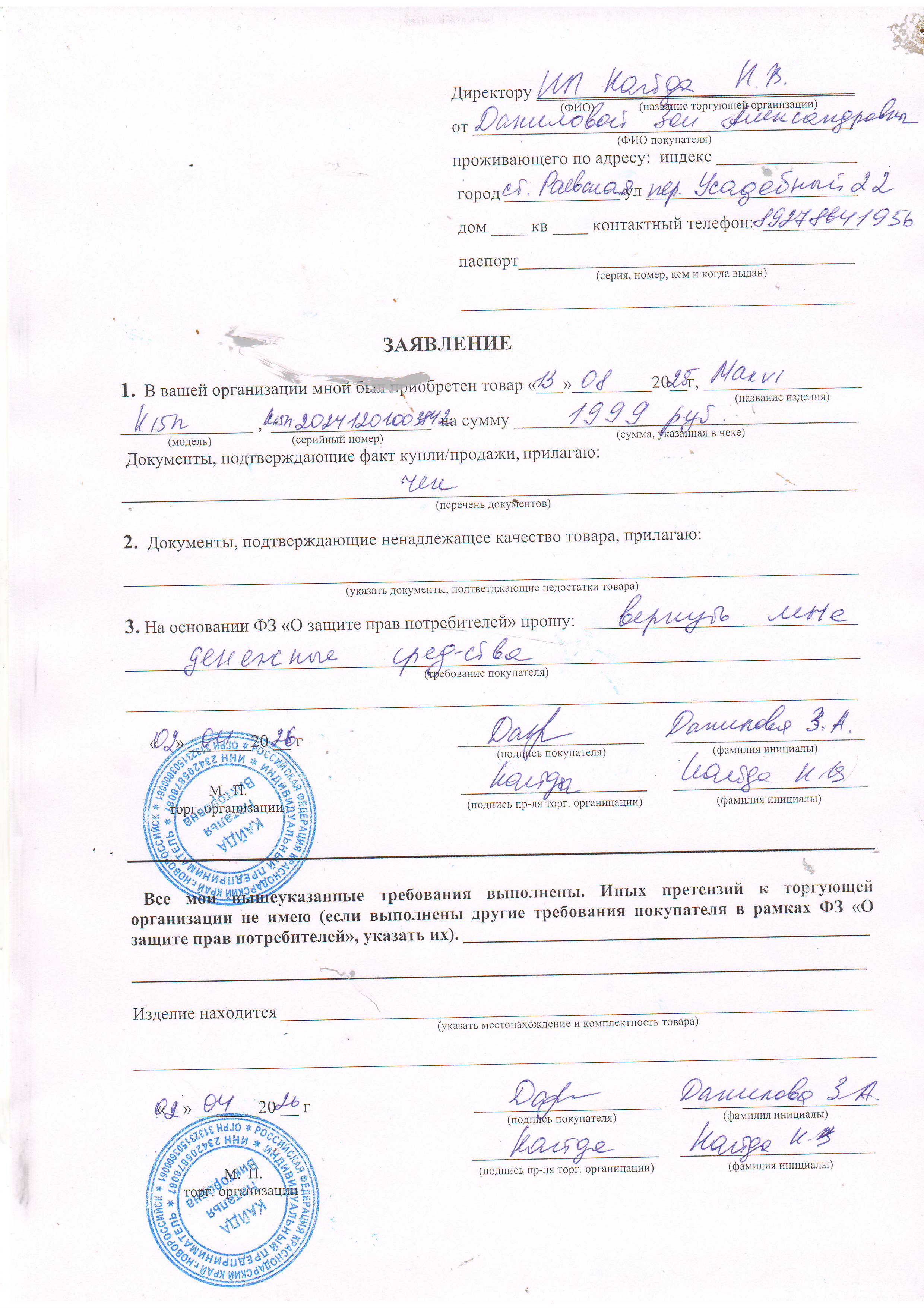 ../ Гарантийный талон.JPG 02-Apr-2026 11:40 316K Дополнительное_фото_1.jpeg 02-Apr-2026 11:40 3M Дополнительное_фото_2.jpeg 02-Apr-2026 11:40 2M Заявление о расчете с конечником.JPG 02-Apr-2026 11:40 764K Серийный номер (Стикер Техноуспеха).jpeg 02-Apr-2026 11:40 3M Товар целиком.jpeg 02-Apr-2026 11:40 3M Упаковка.jpeg 02-Apr-2026 11:40 2M Чек.JPG 02-Apr-2026 11:40 257K