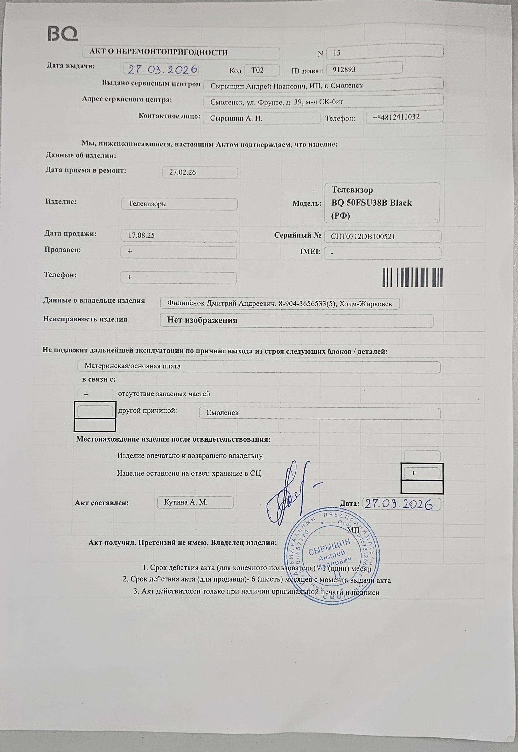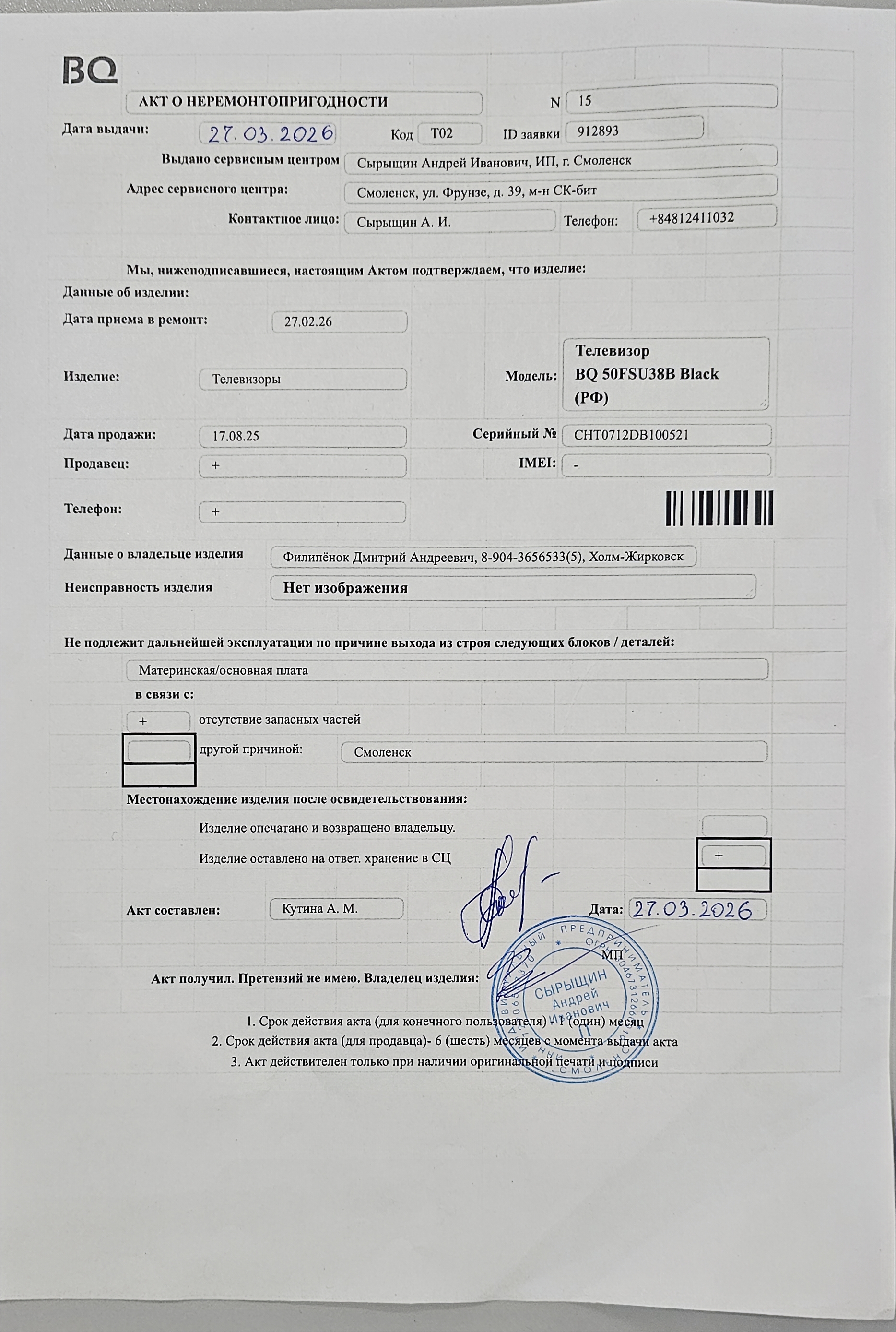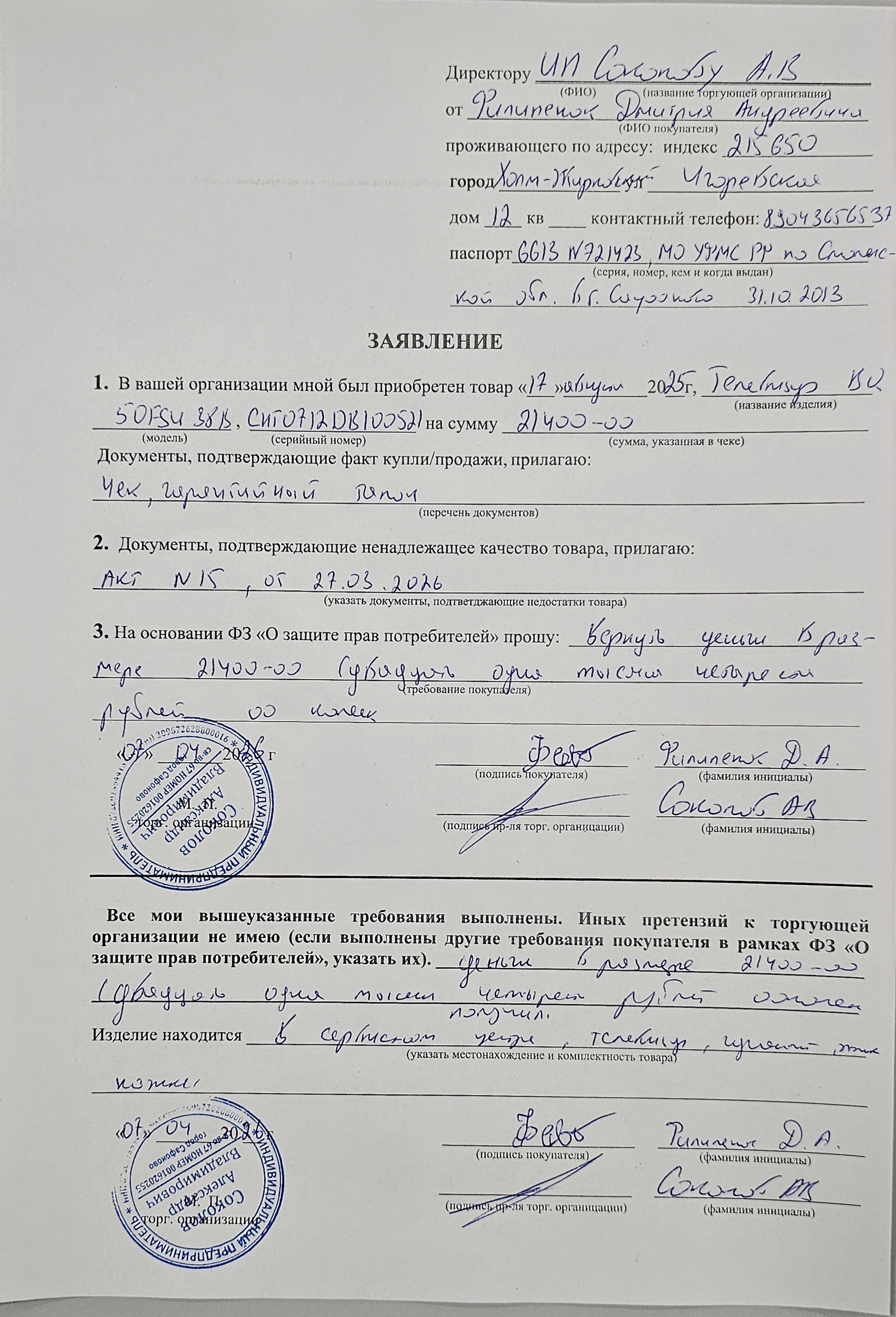../ Акт неремонтопригодности.jpg 08-Apr-2026 14:58 3M Гарантийный талон.jpg 08-Apr-2026 14:58 3M Дополнительное_фото_1.jpg 08-Apr-2026 14:58 2M Дополнительное_фото_2.jpg 08-Apr-2026 14:58 3M Заявление о расчете с конечником.jpg 08-Apr-2026 14:58 3M Серийный номер (Стикер Техноуспеха).jpg 08-Apr-2026 14:58 2M Товар целиком.jpg 08-Apr-2026 14:58 2M Упаковка.jpg 08-Apr-2026 14:58 2M Чек.jpg 08-Apr-2026 14:58 2M